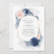 Dusty rose et fleurs bleu marine élégante répétition dîner invitations
