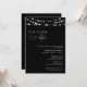 Invitation de dîner de répétition noir et blanc rustique et minimaliste avec calligraphie manuscrite et conception de lumières de chaîne.