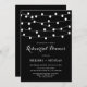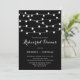 Cette invitation à la répétition élégante et fantaisiste présente des lumières de fée en suspension blanche sur un arrière - plan noir. Personnalisez en ajoutant vos détails. Cette invitation à dîner de répétition en noir et blanc est parfaite pour les mariages de automne et en plein air.