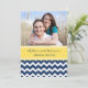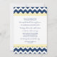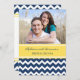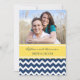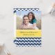 Invitations de soirée modèle photo personnalisées dans un motif moderne et élégant de zigzags zigzags de chevron glacé jaune citron, bleu marine foncé et blanc joyeux. Personnalisez le texte pour créer une invitation unique pour votre dîner de répétition mariage. Contactez-nous pour demander un changement de couleur. Disponible dans de nombreux produits mariages correspondants.