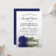 Cette magnifique invitation à dîner de répétition mariage présente un design élégant avec un seul rose bleu marine se reflétant dans une piscine avec vagues et vagues. Il y a des heures et des endroits pour la répétition et le dîner, donc votre fête de mariage aura toutes les informations dont ils ont besoin. Le dos est imprimé dans une belle couleur marbrée ou texturée bleu profond, donnant à l'invitation une sensation luxuriante et soignée.