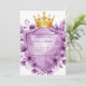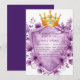 Ce modèle faire-part de mariage exquis présente une couronne d'or royale ornée de bijoux en améthyste, nichée au-dessus d'un bouclier héraldique encadré d'or. Autour du design sont luxuriantes lavande et des pivoines violettes, créant un luxueux motif floral vintage. Parfait pour des fêtes romantiques, à thème royal ou élégantes avec une touche de noblesse et de charme floral. Le bouclier vide offre de l'espace pour les noms, les dates ou les messages personnalisés.