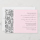 Invitations personnalisées pour le dîner de soirée dans un motif vintage moderne et élégant de couleur rose clair, gris fusain et blanc chic et classique à motifs floraux damas. Personnalisez le texte pour créer une invitation unique pour votre dîner de répétition mariage. Contactez-nous pour demander un changement de couleur. Disponible dans de nombreux produits mariages correspondants.