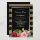 Cet élégant dîner de répétition de mariage allie moderne et chic avec des roses mariage traditionnels. Il présente une image époustouflante de roses roses roses et rouges avec une verdure au fond. L'image est posée sur un cadre doré brillant. Votre texte personnalisé est en or clair au centre. Tout est placé sur un dramatique arrière - plan noir et fausse parties scintillant de bande d'or. L'arrière de l'invitation est noir. Elégant, tendance et adapté aux mariages en toute saison ! Assurez-vous de voir les produits mariages correspondants, y compris les invitations et les cartes RSVP, dans notre magasin. *Remarque : l'image est imprimée et l'arrière - plan ne contient aucune parties scintillant réelle.