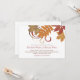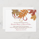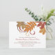 Conception élégante de l'invitation à dîner sur le thème de la répétition mariage. Notre papeterie mariage "Feuille en chute" présente des feuillages d'automne saturés et des tourbillons de défilement. Les couleurs sont orange, cuivre, marron, rouge et or.