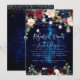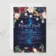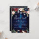 Dîner de répétition rustique Bocal Mason Lumière Cordes. Avec ciel bleu minuit, fleurs aquarelles boho bordeaux et rose pâle et roses navales. Accentué d'une écriture manuscrite élégante et moderne en or faux (avec filtre argenté) Invitation de mariage. Couleur de fond DIY.