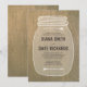 Cute rustique mason jar country répétition invitations de dîner à la campagne pour égaler votre thème mariage grange. Un style invitation, mignon et décontracté, avec une typographie branchée et un joli dessin en bocal de maçon avec des flèches d'amour dessinées à la main. arrière - plan de texture naturelle en bois.