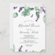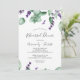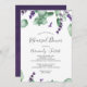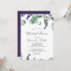 Cette invitation à dîner rustique à la lavande et à l'eucalyptus est parfaite pour une répétition simple et élégante de mariage extérieur. Le design floral présente des feuilles d'eucalyptus aquarelle et de la verdure avec des sprigs de fleurs sauvages violets.