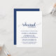 Cette carte d'invitation à la répétition en calligraphie bleu marine est parfaite pour un mariage élégant. Le design blanc et bleu présente une typographie rustique chic et un coeur romantique.