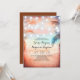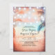 Dîner absolument romantique, élégant et unique sur la plage invitation avec collier de lumières suspendues sur les palmiers. Invitations de la plage tropicale et moderne avec coucher de soleil sur la mer de corail. Parfait pour destination île nuit avant mariage aussi.