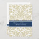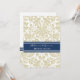 Invitations personnalisées pour le dîner de soirée dans un motif vintage moderne et élégant bleu marine foncé, sable taupe brun et blanc chic et floral damassé classique. Personnalisez le texte pour créer une invitation unique pour votre dîner de répétition mariage. Contactez-nous pour demander un changement de couleur. Disponible dans de nombreux produits mariages correspondants.