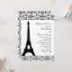 Une fleur de lise motif complexe accentue la tour Eiffel sur cette invitation, qui fait partie de la collection mariage complète Tres Paris. Il est indiqué sur le document de base; cependant, je recommande le poids et la texture du papier de lin.