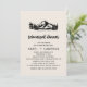 Cette vintage carte d'invitation à la répétition de nature sauvage est parfaite pour une répétition de mariage de montagne. La conception inspirée des montagnes rocheuses présente un paysage de montagne, de lac et de forêt dessiné à la main.