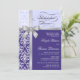 Invitation Dîner de répétition violet Damask Faux Silver Ribb