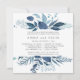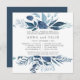 Notre invitation à dîner de répétitions Wild Azure dans un format carré unique encadre votre répétition de cérémonie et les détails de célébration avec une bordure supérieure et inférieure du feuillage d'aquarelle d'hiver et des feuilles dans des tons bleus glacés.