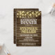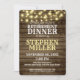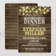 Invitation à une fête de retraite avec un style de police de signalisation western et un décor en bois avec des guirlandes lumineuses festives. Cette invitation de dîner de répétition de style rustique avec des lumières et du bois de grange a un texte et des polices entièrement modifiables, parfaite pour les fêtes de retraite organisées par une entreprise ou une famille.