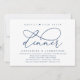 C'est la carte d'invitation de la fête d'élopement de mariage, avec un design de script minimaliste romantique et moderne (dîner heureux pour toujours), sur le thème du bleu marine. Veuillez éditer avec les détails de votre invitation de fête d'élopement de mariage.