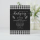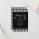Invitez vos proches à une célébration festive de Thanksgiving avec cette invitation de dîner à carreaux de bison noir et blanc. Avec un design à carreaux classique associé à une typographie élégante, cette invitation capture à la fois une esthétique rustique et sophistiquée, parfaite pour une réunion de vacances. Personnalisez-la avec vos détails d'événement pour un touche unique et mémorable pour votre dîner de Thanksgiving.