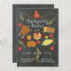 Unique et Cute Chalkboard Thanksgiving Dîner Invitation mettant en vedette de la nourriture d'action de grâce ornée de feuilles et posée sur un arrière - plan populaire en carton noir. Retourner notre populaire invitation à Thanksgiving pour obtenir le retour