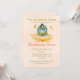 Une invitation à un dîner de Thanksgiving avec un design saisonnier mignon. Un dindon d'apparence drôle, portant un chapeau de pèlerin et assis avec les jambes écartées, mangeant de la tarte au potiron. Il a également une expression idiote sur le visage. Tenant un couteau et une fourchette et prêt à plonger dans ce délicieux dessert.