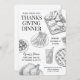 Définissez le ton d'une réunion de vacances conviviale avec cette invitation au dîner de Thanksgiving dessinée à la main de style rustique. Comportant des illustrations détaillées en noir et blanc de nourriture - y compris la dinde, la tarte, les boissons et les plats de la récolte automnale - ce design apporte une sensation intemporelle et artisanale à votre célébration. Parfait pour les dîners de Thanksgiving formels et les festins décontractés de Friendsgiving.
