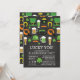 Commencez votre la célébration de jour de St Patty outre de la droite avec notre invitation colorée et d'amusement de tableau vous de St Patrick chanceux de la partie. Notre invitation élégante et à la mode comporte un shamrock, lutin initialise, barbe, bière de tuyau, fer à cheval, pot d'or, et moustache réglée sur un arrière - plan noir contemporain et populaire de tableau. Renversez l'invitation de trouver plus d'un arrière - plan assorti pour un contact spécial supplémentaire.