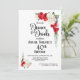 Invitation vos amis et les proches pour le dîner et les boissons avec cette élégante invitation à dîner fleurie rose rouge et blanc à 40e anniversaire qui dispose d'une zone de texte personnalisable qui vous permet d'inclure sans effort tous les détails nécessaires pour votre fête d'anniversaire spécial, y compris la date, l'heure, le lieu et les informations RSVP. Une variété de types de papier et de styles d'angle sont disponibles pour vos invitations uniques, ainsi que l'option de téléchargement si vous préférez un format numérique.