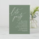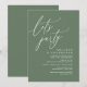 Marquez le début de votre éternité avec élégance en utilisant notre romantique rustique contemporain vert thème mariage elopement joyeusement après le brunch déjeuner dîner soirée carte d'invitation, "Let's Party". Parfait pour les couples qui souhaitent profiter de leur joyeux événement, cette invitation exhale le raffinement avec un soupçon de jeu, préparant le terrain pour un événement mémorable. Décorée avec un thème de design de script moderne intemporel, elle ajoute une touche de charme raffiné à vos festivités, cette invitation promet de capturer magnifiquement votre histoire d'amour.