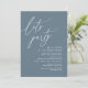 Marquez le début de votre éternité avec élégance en utilisant notre romantique contemporain bleu foncé elopement mariage à thème heureux jamais après brunch déjeuner dîner soirée carte d'invitation, "Let's Party". Parfait pour les couples qui souhaitent profiter de leur joyeux événement, cette invitation exhale le raffinement avec un soupçon de jeu, préparant le terrain pour un événement mémorable. Décorée avec un thème de design de script moderne intemporel, elle ajoute une touche de charme raffiné à vos festivités, cette invitation promet de capturer magnifiquement votre histoire d'amour.