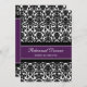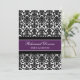 Invitations faites sur commande de dîner de répétition dans le pourpre foncé d'aubergine moderne et élégante, motif floral classique noir et blanc de damassé. Personnalisez le texte pour créer une invitation unique pour votre dîner de répétition de mariage. Contactez-nous pour demander un changement de couleur. Disponible dans beaucoup de produits assortis de mariage.
