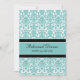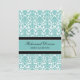Invitations faites sur commande de dîner de répétition dans le bleu de turquoise moderne et élégant, motif floral classique noir et blanc de damassé. Personnalisez le texte pour créer une invitation unique pour votre dîner de répétition de mariage. Contactez-nous pour demander un changement de couleur. Disponible dans beaucoup de produits assortis de mariage.