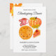 Dîner Bon thanksgiving Citrouille orange Invitation florale avec fleurs d'aquarelle, latte d'épice Citrouille, tarte Citrouille et feuilles d'automne sur le côté arrière. Il peut également être utilisé comme une invitation à l'action d'amitié, Modifier le texte en utilisant personnaliser cette option modèle.