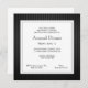 Cette invitation à dîner présente un thème d'affaires élégant avec un arrière - plan noir et des rayures verticales gris clair. Une boîte blanche avec une bordure argentée offre du texte personnalisé pour ajouter votre invitation à l'événement professionnel.