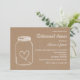 Invitation de dîner de répétition comportant l'arrière - plan brun rustique de papier d'emballage avec le pot de maçon chic et l'illustration de coeur semblant belle et unique.