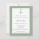 Invitation vos amis et famille les plus proches à célébrer la nuit précédente avec cette Sage Green Simple Ancre Nautique Dîner Invitation. Doté de l'expression "Mangez, buvez et soyez mariés" en écriture gracieuse et d'un motif d'ancrage intemporel, ce design allie parfaitement le charme côtier à la sophistication moderne. Une typographie propre et une mise en page simple mettent en évidence les noms de la mariée et du marié ainsi que tous les détails essentiels de l’événement. Idéal pour les thèmes de mariage maritime ou de plage, cette invitation côtière chic donne le ton parfait pour une réunion de répétition détendue et élégante.