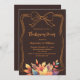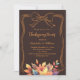 Une arrière - plan de couleur brun foncé. Décoré de feuilles de chute de couleur muette et d'un arc dessiné à la main. Personnalisez et ajoutez les détails de la fête.