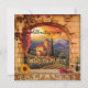 Dîner artistique Thanksgiving invitation avec une peinture colorée d'un paysage de style italien encadré par une arche romaine et vin et raisins avec un tournesol.