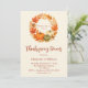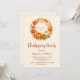 Un arrière - plan beige doux et chaleureux. Décoré de couronne à thème automne avec feuillage orange et citrouilles. . Avec le texte : Thanksgiving Dinner écrit avec un script de style moderne écrit à la main. Personnalisez et ajoutez les détails.