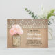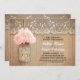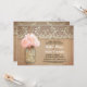 Dîner rustique mignon invitation avec pot de mason avec fleur d'hydrangée rose. Invitation parfait pour un dîner de répétition de pays avec dentelle vintage et des accents de bois en difficulté.
