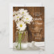 Invités Invitations avec la charmante Mason Jar et White Daisies Mariage campagnard Rehearsal Dinner Invitation. Cet invitation de soirée rustique chic et informel, à la fois élégant et informel, dispose d'une photo fleurie numériquement pittoresque d'un bocal en verre rempli de fleurs de marguerites blanches et d'un arrière - plan en bois de grange brun patiné. Idéal pour organiser votre fête décontractée à la ferme ou à la grange.