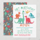Célébrez l'étape importante de votre petit avec une annonce digne d'un rugissement en utilisant cette invitation d'anniversaire de 1 an sur le thème des dinosaures — la façon parfaite d'inviter amis et famille à une fête d'anniversaire amusante sur le thème des dinosaures ! Avec un design préhistorique ludique aux couleurs vives et des dinosaures adorables, cette invitation peut être personnalisée avec le nom de votre enfant, les détails de la fête, la date, l'heure et le lieu.