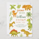 Invitation à la fête d'anniversaire de Dinosaur. Continuez avec cette invitation à la fête d'anniversaire de Dinosaure éditable ! Doté de dinos mignons, d'éléments de jungle et de couleurs ludiques, il est parfait pour une fête rôtie. Entièrement personnalisable avec les détails de votre fête.