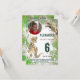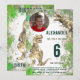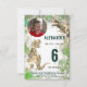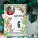 Un Jurassic jungle vert et marron aquarelle splash dino 6ème anniversaire invitation pour l'enfant qui aime les dinosaures. Ces fans de Roaring T Rex invitation Dino à une fête d'anniversaire amusante. arrière - plan Brown et vert d'aquarelle avec Tyrannosaurus rex en bleu vert et turquoise Personnalisez ce design de la jungle Tyrannosaurus rex avec une photo, le numéro de l'anniversaire et les détails de la fête et vous êtes tous prêts pour un anniversaire de dinosaure bondée amusant thème dino anniversaire. Toutes les espèces de dinosaures sont les bienvenues. Illustration originale de Catherine Sweetman