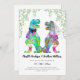Dégustez vos invités avec ce faire-part de mariage coloré à thème de dinosaure psychédélique avec des mariées de dinosaures amusantes et le pelage et l'aquarelle feuillage. Facile à customiser avec les noms des mariés et mariés, la date du mariage et tous les détails du lieu mariage dans le script de typographie moderne. Illustrations amusantes T-Rex mariée et mariée dans les teintes rose violet bleu vert jaune et orange avec la verdure d'eucalyptus. Dino original unique oeuvre de l'artiste Catherine Sweetman