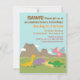 Invitation vos amis et votre famille pour un bon moment avec cette invitation de dinosaures mignonne et colorée. Il est accompagné de dinosaures caricaturaux, d'un Brachiosaurus jaune, d'un Tricératops violet, d'un Stegosaurus vert et d'un Pterodactyle rose. Arrière - plan de montagnes et de nuages. Cette invitation séduisante fera le bonheur des jeunes enfants à la fête thématique des dinosaures ! Personnalisez-vous facilement avec les détails de votre fête.
