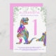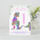 Dinosaure coloré petite fille 1er anniversaire invitation fête. Ce Roaring coloré T-Rex et l'invitation stégosaurus mignon Dino fans à une fête d'anniversaire violet pour les amateurs de dinosaures. Personnalisez ce Tyrannosaurus coloré et stegosaurus multicolore mignon sauvage une invitation en ajoutant le nom du garçon ou de la fille d'anniversaire, le numéro de l'anniversaire et les détails de la fête et vous êtes tous prêts pour un anniversaire de dinosaure rose de dino bonjour amusant. Toutes les espèces de dinosaures sont les bienvenues. Dinosaure, oeuvre originale de l'artiste Catherine Sweetman