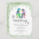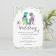 Dinosaure coloré thème faire-part de mariage avec le feuillage d'eucalyptus parfait Si vous et votre partenaire aimez les dinosaures. Une mariée et mariée en dinosaure amusante dans des teintes turquoise jaune et vert rose violet couleur aquarelle avec modèle facile à utiliser dans un script élégant. Il suffit d'ajouter le nom de la mariée et des mariés et la date du mariage et tous les détails importants pour un drôle de mariage à thème T-Rex dino. OEuvre originale de l'artiste Catherine Sweetman