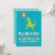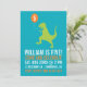 Invitation festive et amusante pour anniversaires de enfants fêtes parfaites pour les fêtes d'anniversaire de garçons. Il est doté d'un motif rayé bleu et blanc sur le dos et d'un dinosaure vert avec ballon de fête. Personnalisez en ajoutant vos propres détails.