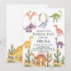 Un design mignon avec des dinosaures colorés. Vous pouvez personnaliser cette invitation avec vos propres détails.