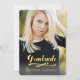 Couleurs noir et or. Utilisez cette élégante et élégante invitation à la remise de diplômes de photographie pour invitation votre famille et vos amis afin de célébrer le moment étincelant de votre fille. Simples Faux Gold Foil Imprimé Invitation de la partie de graduation dans une conception verticale. Conception par Elke Clarke © Visitez notre boutique à www.zazzle.com/monogramgallery* pour plus de design et de styles. Ajoutez votre propre photo et texte. Typographie de feuille d'or écriture manuscrite superposition de texte de police (effet photo imprimé) avec le mot "Graduate". Remplacez l'exemple de photo par le vôtre. Autres styles et couleurs disponibles.
